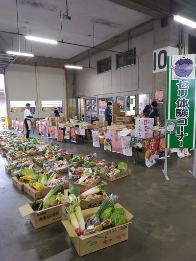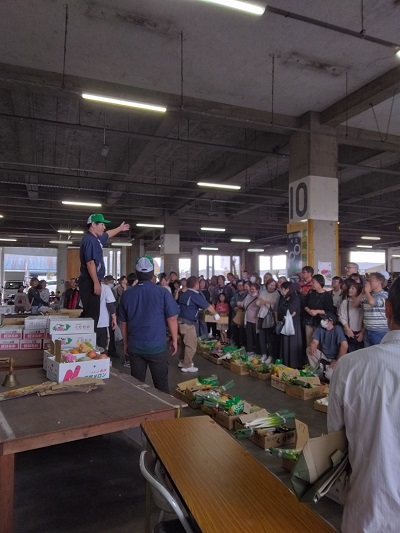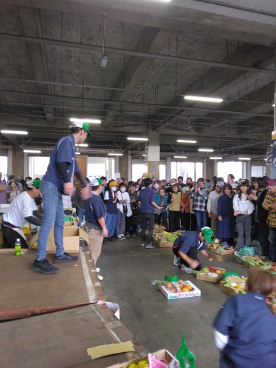 野菜模擬せりでは野菜釣り同様に準備で忙しく
