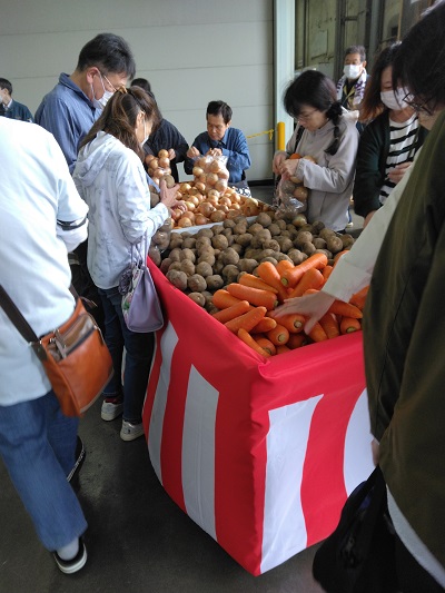 こちらは箱に野菜・果物を入れていくのでなかなかの重労働です